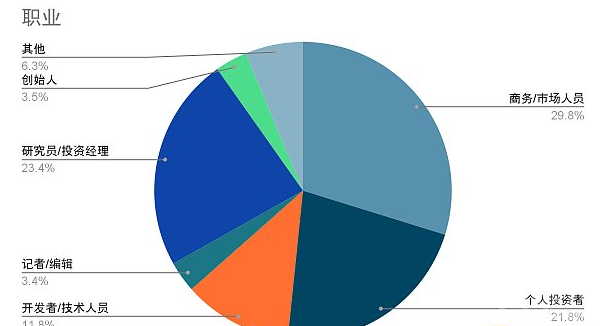 本次调研覆盖了加密行业产业链的项目方、投资机构、媒体 / 自媒体 /KOL、交易所及行业服务机构等,从职业来看覆盖了创始人、商务市场人员、技术人员、个人投资者、研究员 / 投资经理、记者 / 编辑等,具有广泛性和代表性。