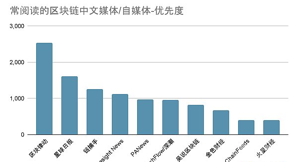 从区块链中文媒体 / 自媒体优先选择度来看,区块律动、星球日报、链捕手品牌影响力居于前三,成立不到半年的「 Foresight News 」进入前四,值得重视。