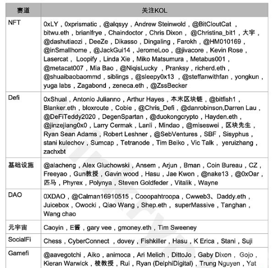 9、现阶段专注于哪些赛道,以及该赛道您比较关注哪些 KOL 的意见