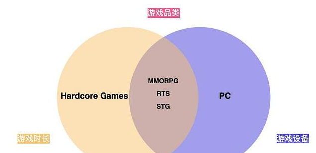 我们用韦恩图对上面的游戏分类进行了交叉归类,并将对它们之间的重叠部分进行用户画像分析。