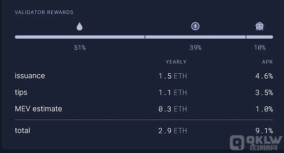 总体来说,大家预期是 5% 左右,但是算上手续费也许可以到 9% 左右。大体规律是,Stake ETH 总量越多,总产量越高,但是分摊到每个验证者头上的收入越少,这个曲线非线性。