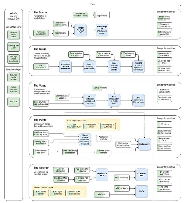 如果粗暴地划分,ETH 可以分为两层:共识层和执行层。前者类似于企业中的领导,后者类似于企业中的员工。空降一批新领导(PoS 节点),大换血掉之前的老领导(PoW 矿工节点),但是员工(EVM)还是之前的员工,因为它们只负责执行。所以,作为用户,你感觉不到有什么区别。