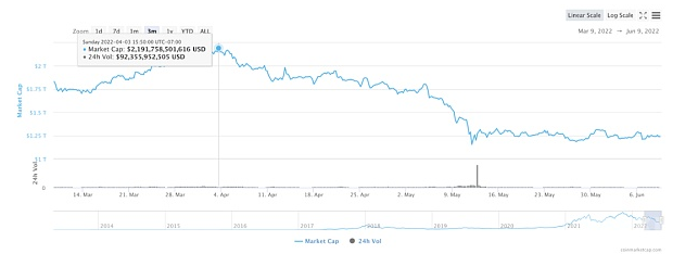 同样,加密货币非常不稳定。就在发表这篇文章的两个月前,我们看到市场在一个月内下降了47%: