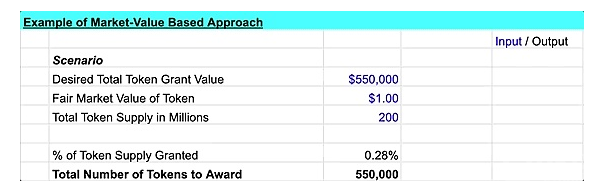 在实践中,你根据你所定义的总薪酬区间决定一个总的薪酬数字,将现金薪酬考虑在内,然后根据授予或计算时代币的公平市场价值(FMV),计算出满足总数字所需的代币数量。