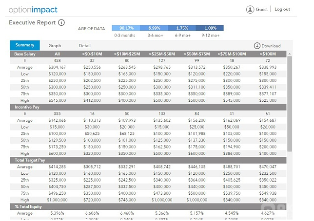 跨国公司的薪酬调查,如Option Impact或Radford等大型行业薪酬调查。风险投资公司通常依靠团队中管理投资组合的人才部门来获得此类数据。你也可以通过提供你的团队的薪酬数据来获取这些工具,这些数据将被匿名汇总在总数据集中。(他们倾向于获得大量的数据,所以当你的团队规模较小时,通常更容易获得,而且申请起来也不那么费时)。