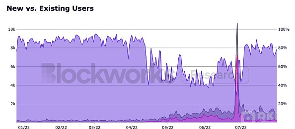6 月 28 日,创纪录的 7,273 名新用户涌入,可能是由于 Arbitrum Odyssey 活动的推动(已被推迟)