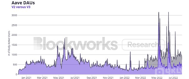 Aave V3 现在看到的 DAU 比 Aave V2 多: