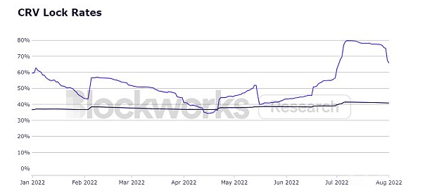 虽然 LP 代币抵押品创造了对资产存款的需求并增加了 Curve TVL,但 CRV 和 veCRV 抵押品将 CRV 从流通中移除,这是 Curve 可持续发展所必需的。全年锁定 CRV 总量稳步增长至 41%,目前平均锁定时间为 3.6 年。此外,CRV 释放量每年减少 15.9%,下一次减少发生在 8 月 14 日。对锁定 CRV 的需求增加以及 CRV 供应的减少为 2022 年剩余时间看涨 CRV 创造了环境。