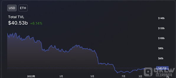 DeFiLlama 数据显示,以太坊 TVL 已从上个月的最低点逐渐回暖,目前回升到 400 亿美元上方。DeFi 总锁仓量已超过 700 亿美元。
