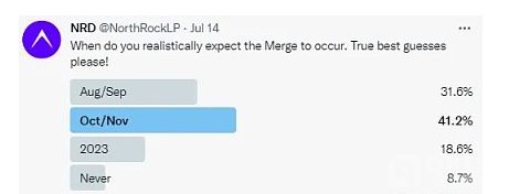 大多数投资者仍然倾向于比特币最大化主义,并且总是在冲淡合并带来的影响。比如他们认为合并从最开始到现在已经 6 年了,经历过无数次的推迟,这次也不例外;第二认为合并的技术问题和执行风险仍然很大,成功的可能性很小。在评估了时机和执行风险之后,我们对合并充满信心。在最终测试网 Goerli 于本周早些时候成功合并后,核心开发人员确定了在 9 月 15 日或 16 日进行合并,接下来的时间主要就是协调生态的各个方面。