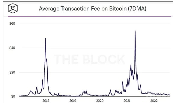 如果 BTC 价格在减半周期左右下跌,安全性下降将更加显著,并可能触发前面提到的负反馈循环。只要价格受到限制,这种安全系统从根本上是不可持续的。解决这个问题的唯一方法是产生有意义的费用收入。这笔费用收入可以取代部分发行,并继续为矿工提供激励,确保即使在发行减少后也能提供安全保障。而现实是比特币网络的费用收入在很长一段时间内都很低微,而且还处于下降趋势。