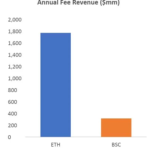 要使加密资产成为被采用的 SoV,它也必须让市场相信它非常安全并且其合法性能够得到保证。这只有在协议的安全预算是长期可持续的情况下才有可能实现,也就是拥有庞大而持久费用池的 PoS 系统才能实现。该系统最有可能的候选者是 ETH,它是仅有的两个拥有大量费用池的 L1 之一,另一个是高度中心化的 BNB。